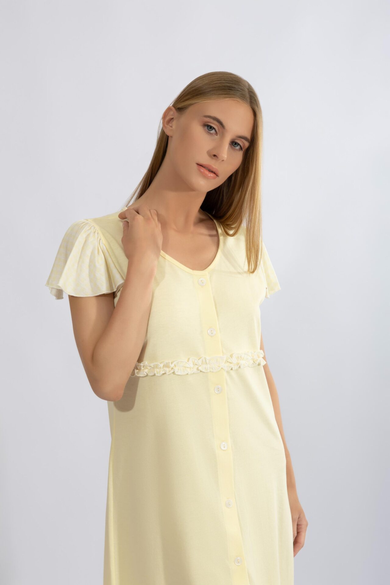 Νυχτικό μονόχρωμο Κοντό μανίκι με πατιλέτα και καρώ detail cotton modal – 310810 yellow