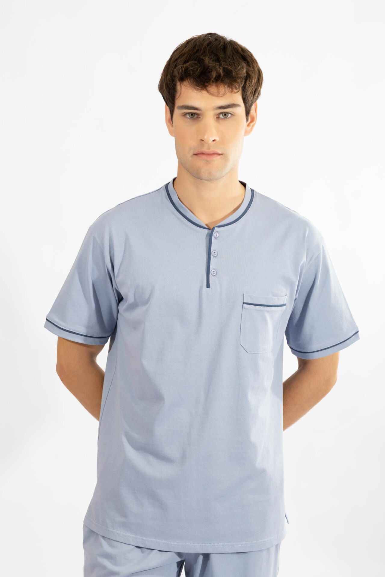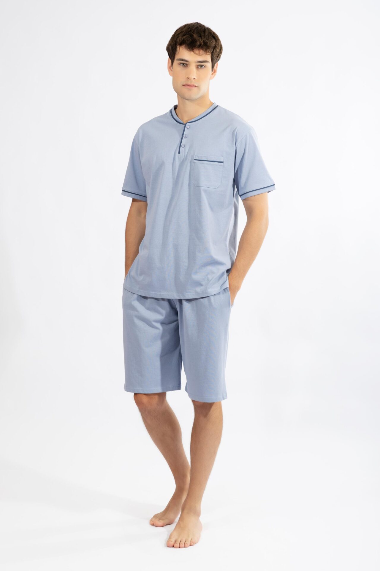Ανδρική Πιτζάμα πατιλέτα με βερμούδα H cotton modal – 810309 ciel