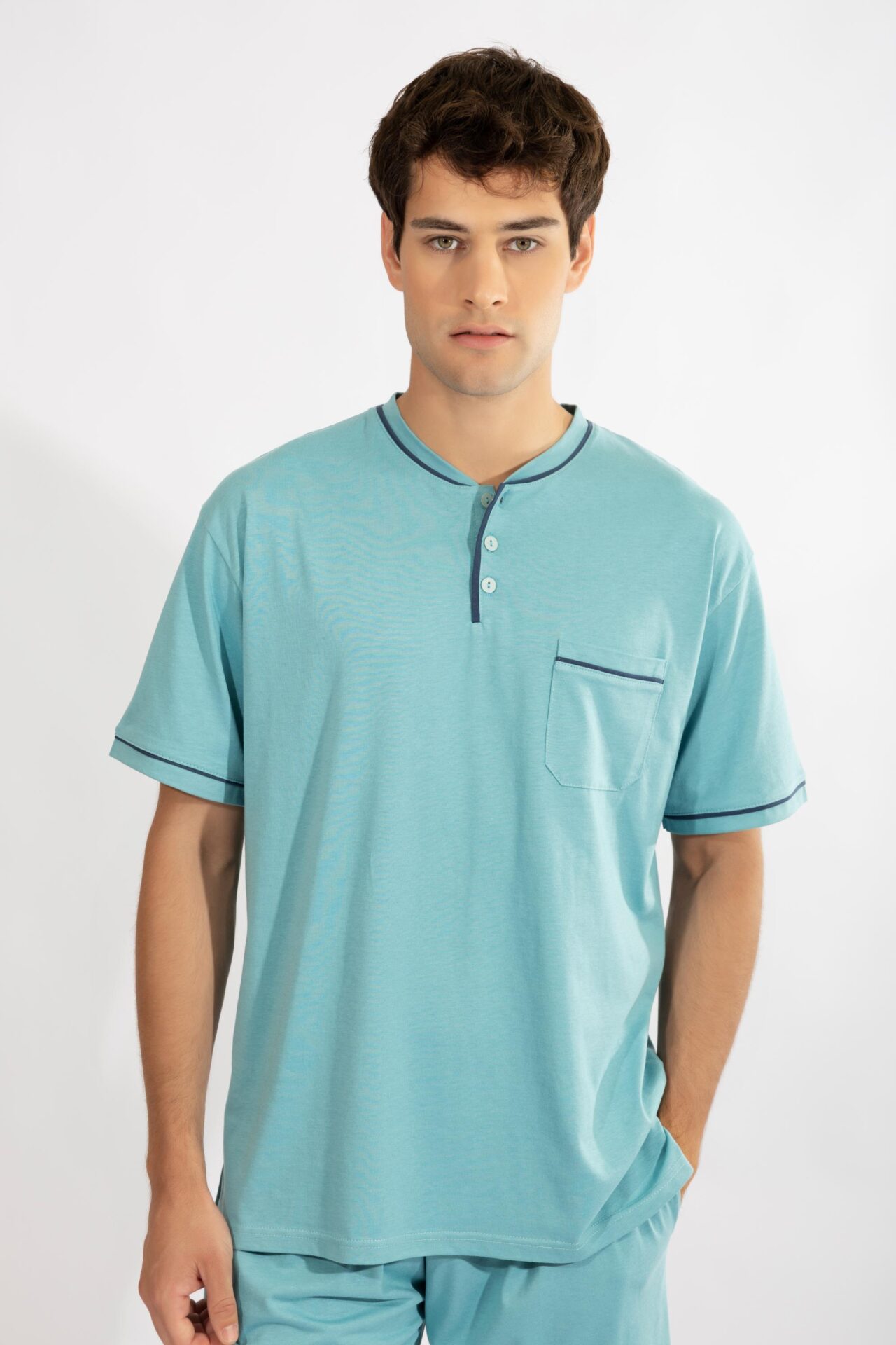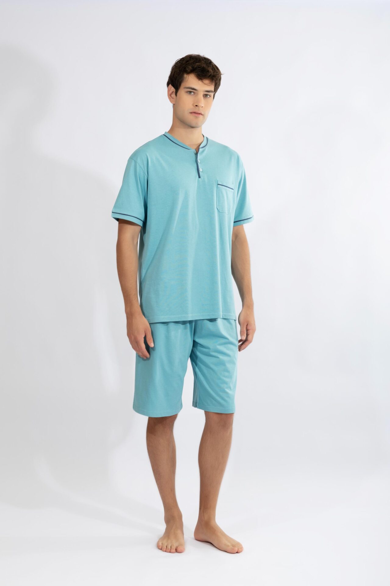 Ανδρική Πιτζάμα πατιλέτα με βερμούδα H cotton modal – 810309 petrol