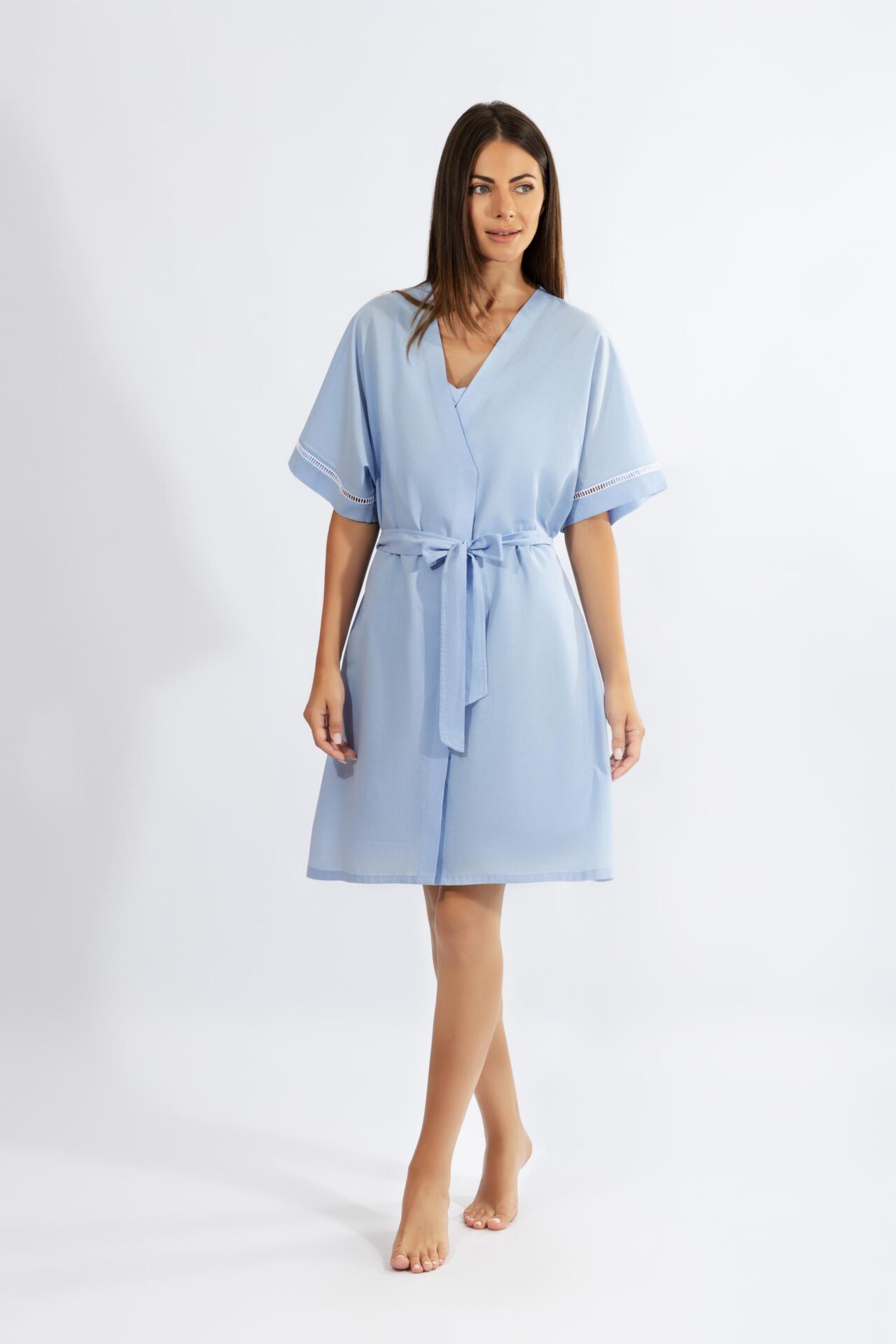Ρόμπα μονόχρωμη σταυρωτή Ποπλίνα cotton – 410701 ciel
